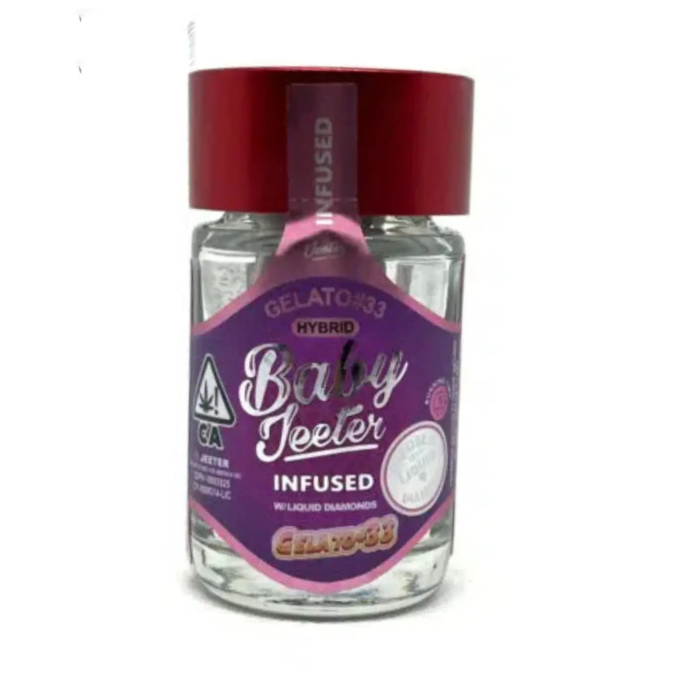 Baby Jeeter (Gelato #33) is a pre-rolled cannabis product made with premium cannabis flower from the Gelato #33 strain. Gelato #33, a hybrid strain, is known for its balanced effects, offering a mix of relaxation and euphoria. It has a sweet, citrusy flavor with earthy undertones, making it a popular choice among users seeking both mental and physical relief.